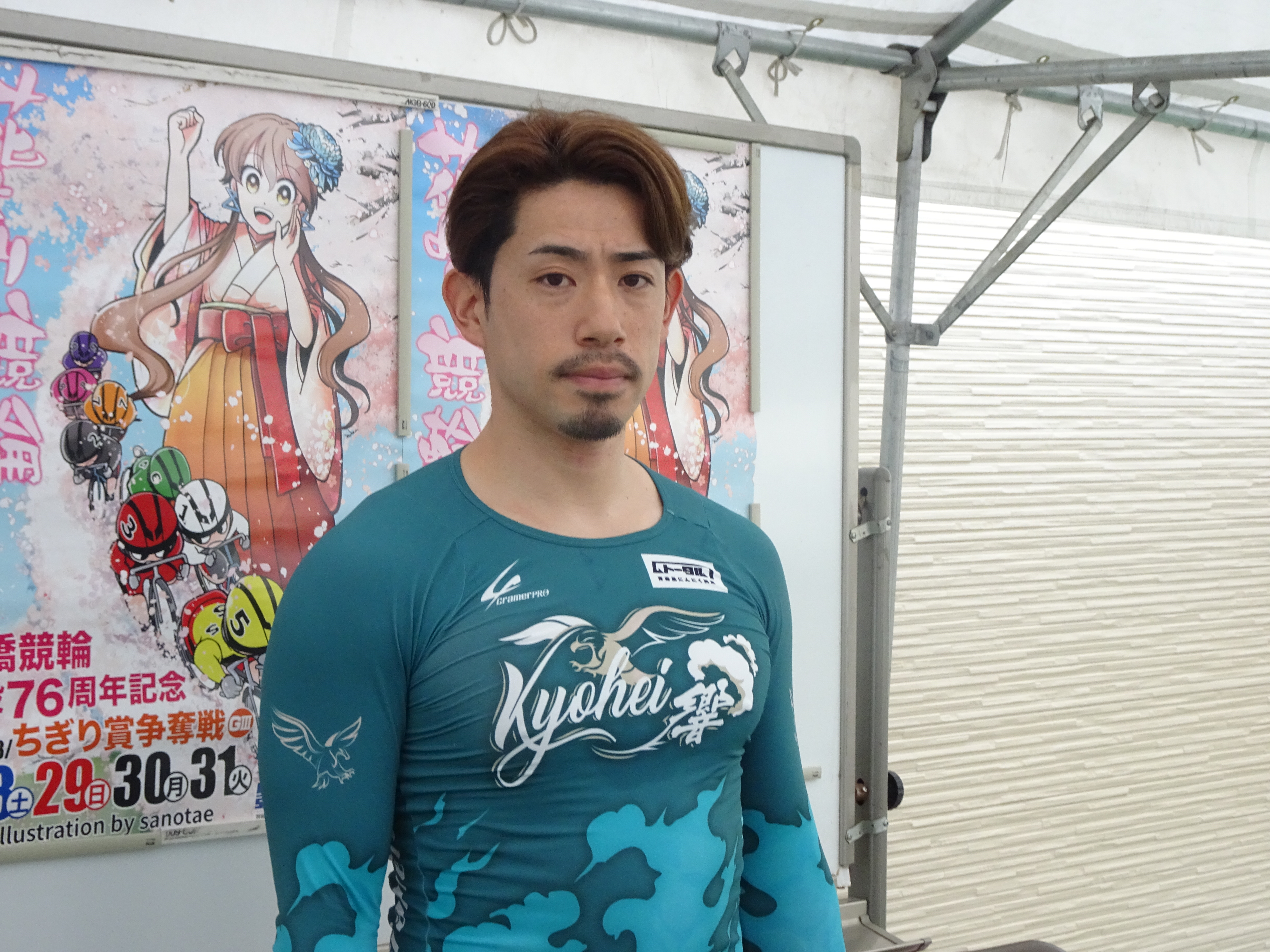 「初手は思惑通りで詰まったら行く作戦でした。僕が一番脚を使っていない展開にはなった。ホームくらいでは前が浮いていたし、タイミングが取りずらかった。大川(龍二)さんは内にいたので、最後はそのまま外を踏んで行った感じで。今回からハンドルを換えて良いと思う。記念の決勝はだいぶ前の松戸以来だと。何とか着に絡みたい。自力自在に」。