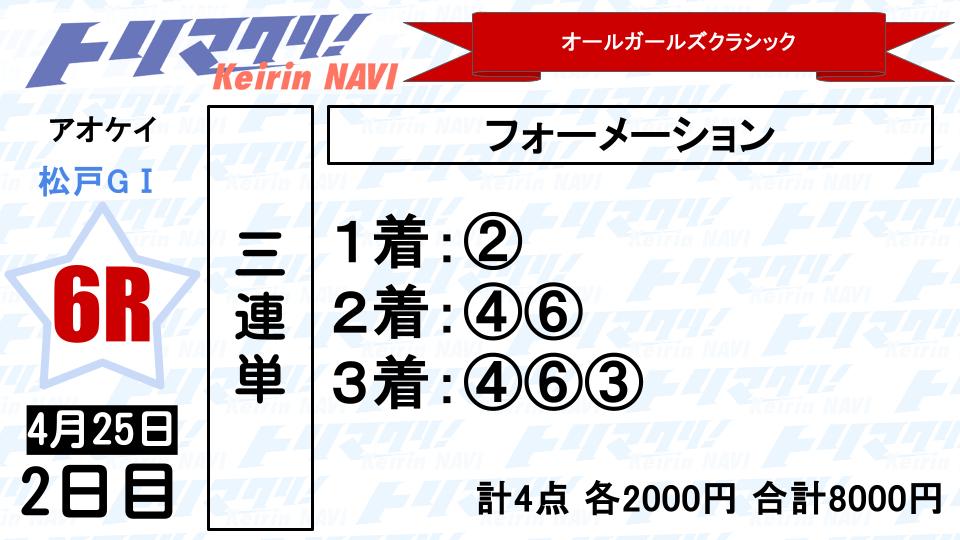 GⅠでも通用しそうな②半田水晶がパワフルに押し切って連勝。総合力ある④林真奈美との争いが有力。