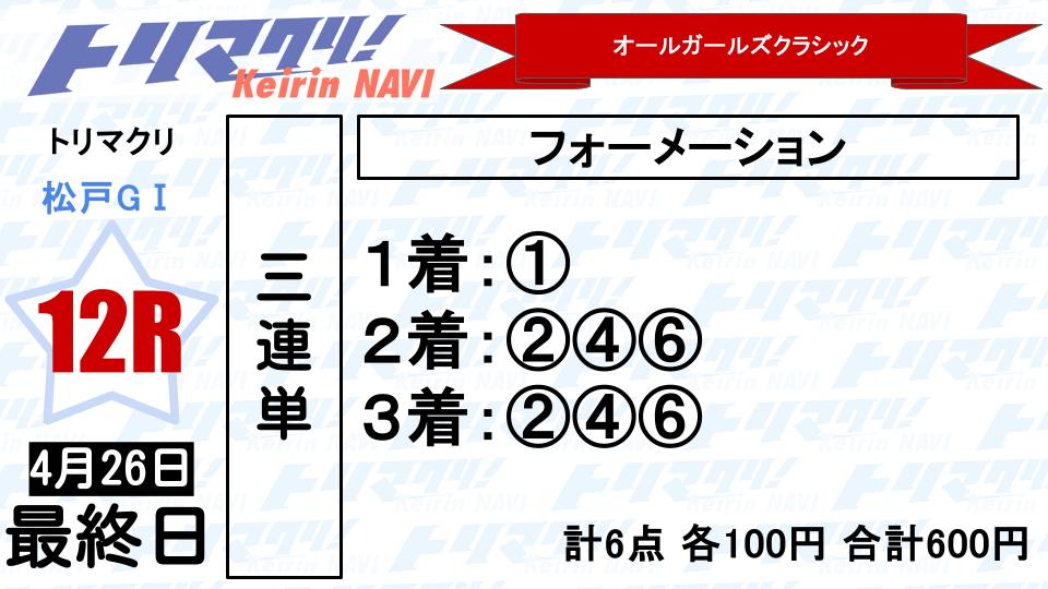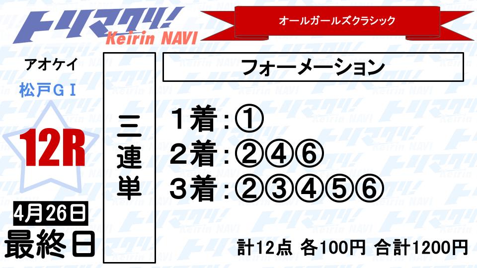 ◎圧倒的一番支持の①佐藤から〇・▲の支持率の高い②尾崎、④児玉、⑥太田の2・3着狙い6点