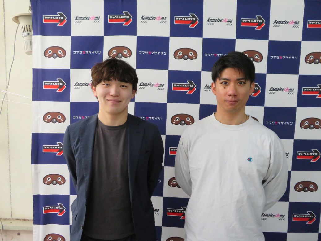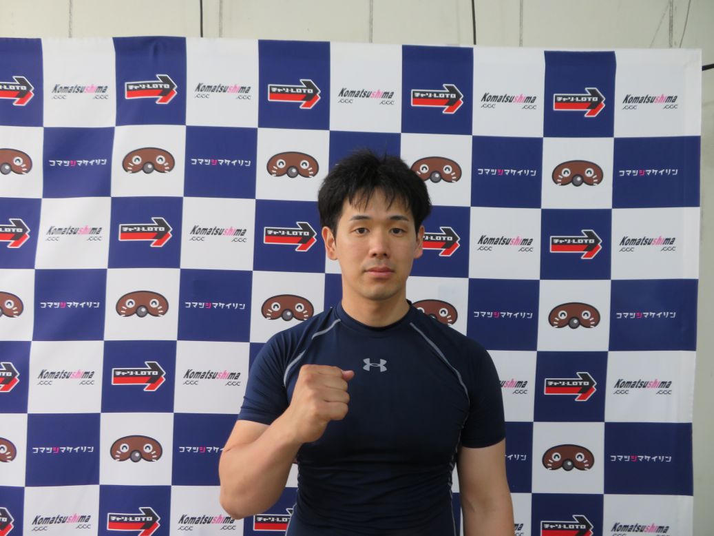 ⑦片桐善也「自力で。状態は悪くないです。セッティングも微調整くらいですね。出し切れれば大丈夫。小松島は風が強いイメージ。みんな一緒だけど、そこを頭に入れて風を味方に走る事ができれば。」