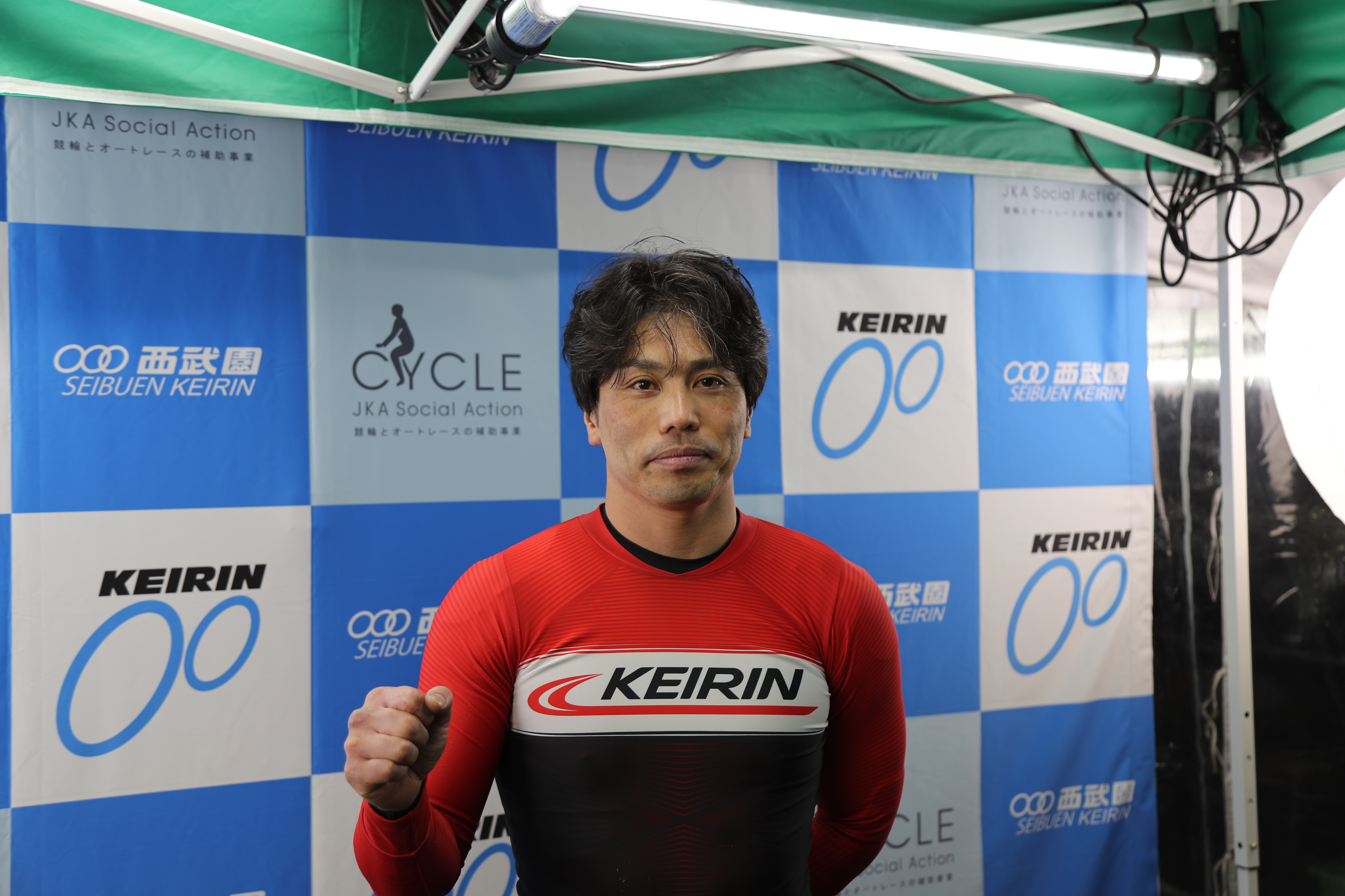 _1着 岩本俊介 「車番が悪かったので取れた位置からと考えていました。動いて後ろ中団になったのであとは自分のタイミングを取って行ったけど自転車が良く出てくれました。最近結果が出ていなかったので1着は嬉しいです。新しいフレームは色々試していて模索中だけど今日は出てくれたし悪くないですね。落車したフレームは使えないことはなかったんですけどもうボロボロで可哀想なので卒業させて家に飾りました(笑)。初日自力で1着取れたし2日目以降はかたさもなくなっていくと思います」。
